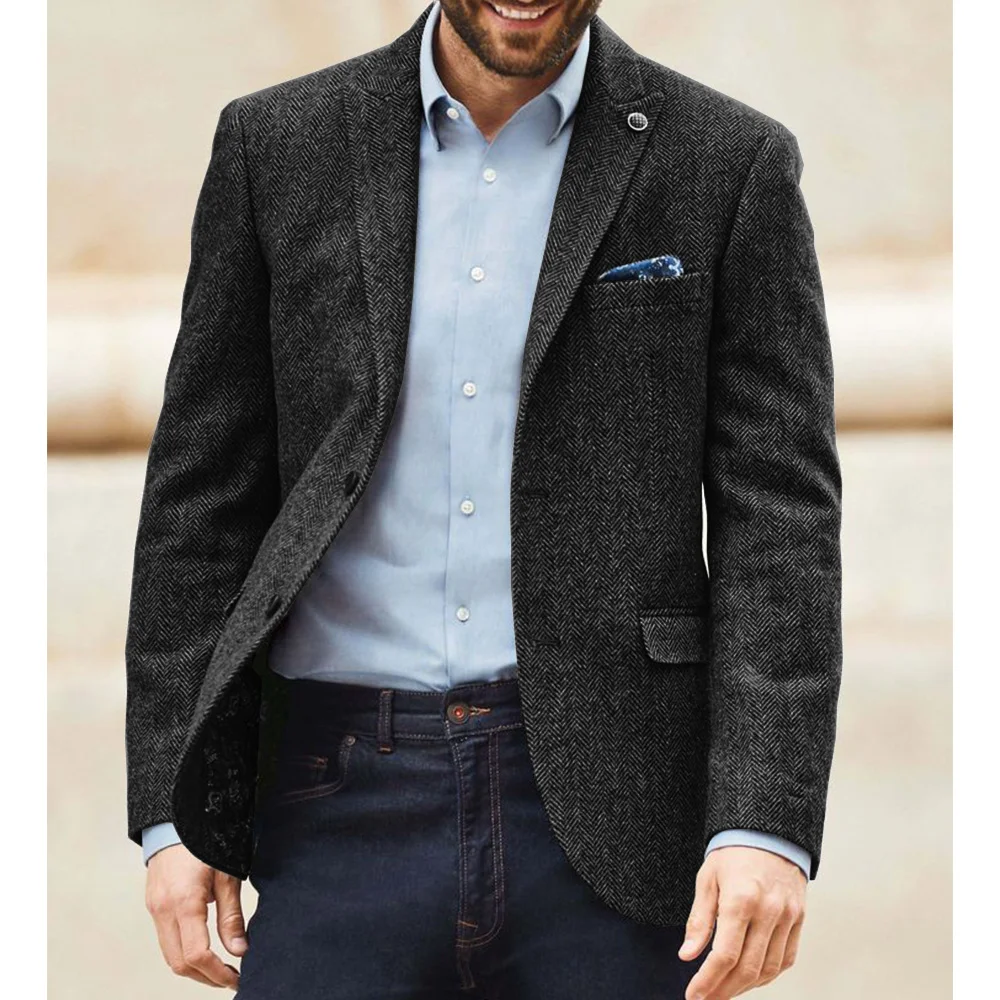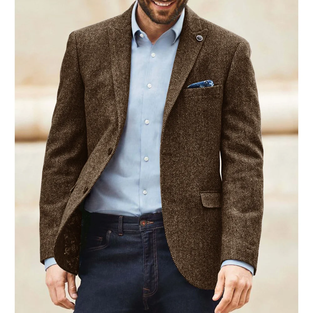 Eleve seu estilo diário com nosso Blazer Masculino Espinha de Peixe – uma peça atemporal que combina o charme vintage britânico com a versatilidade moderna. Confeccionado com um tecido de mistura de lã premium, este blazer oferece calor e maciez excepcionais, tornando-o perfeito para usar no outono e inverno. O clássico padrão espinha de peixe adiciona uma textura sofisticada, enquanto o design de lapela entalhada com um botão mantém uma silhueta elegante e sob medida. Seja para ir ao escritório, um brunch de fim de semana ou um evento especial, este blazer transita facilmente entre ambientes casuais e formais, garantindo que você tenha uma aparência polida e refinada em qualquer cenário.