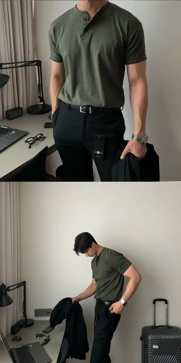 Com um corte slim fit, este t-shirt é perfeito para homens musculosos, oferecendo um ajuste confortável e elegante.