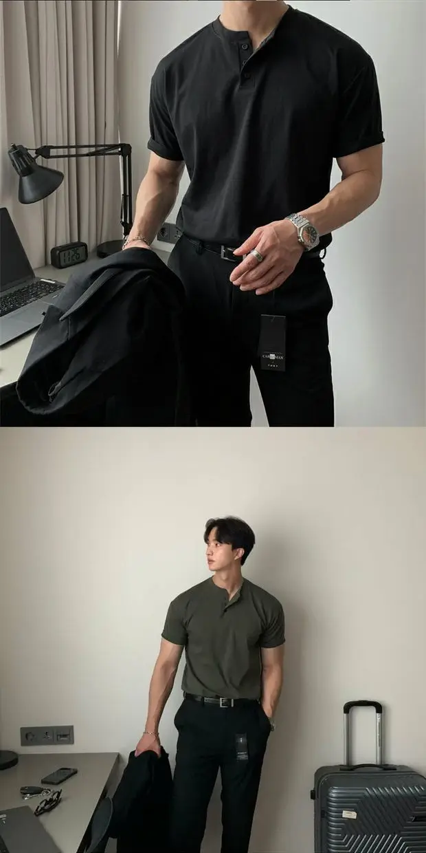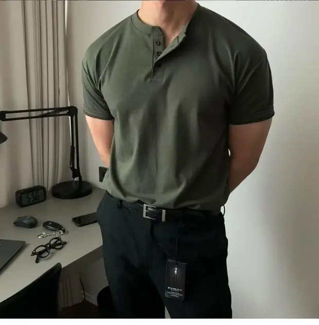 Este t-shirt apresenta um design de gola Henry americana, adicionando um toque de estilo e personalidade ao seu guarda-roupa.