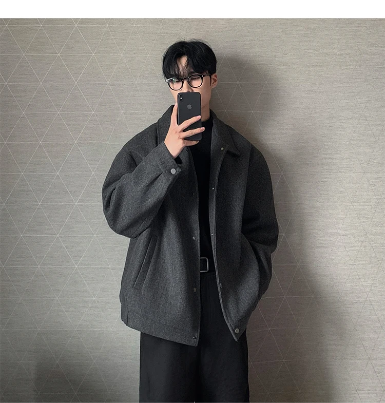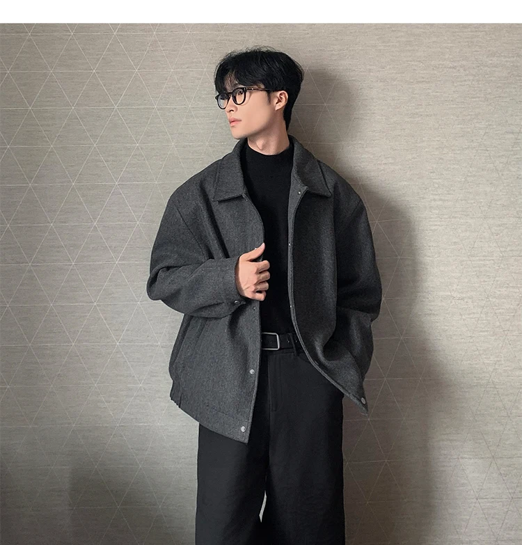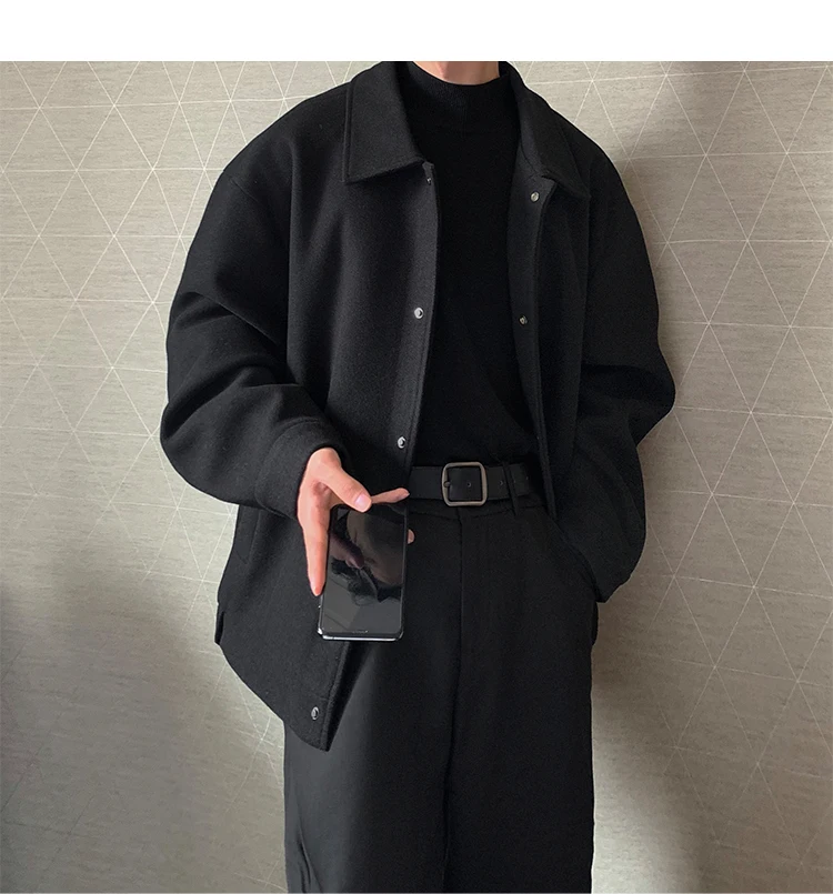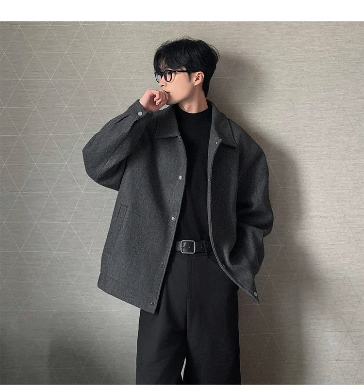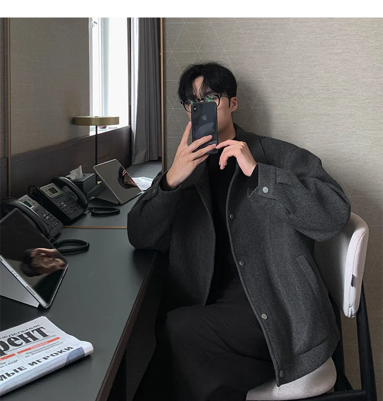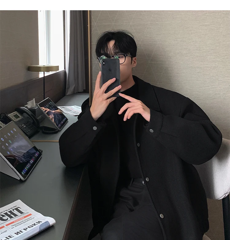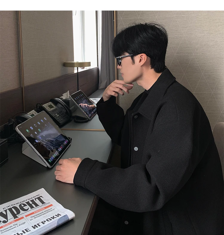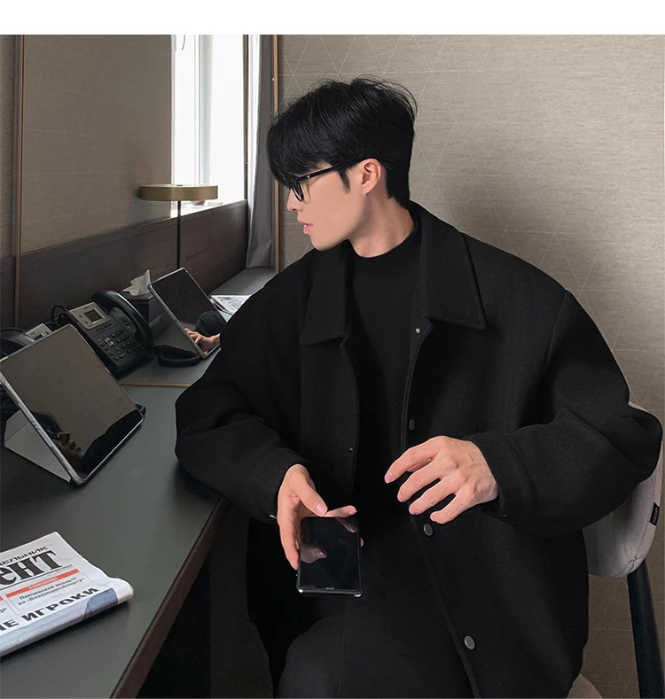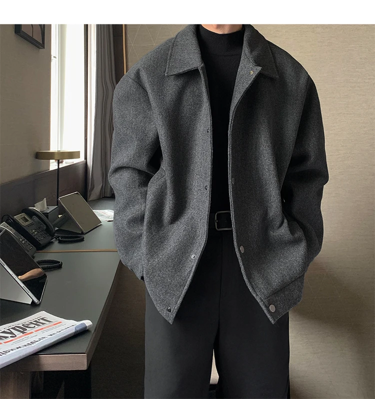 Este casaco de lã apresenta um design de dupla camada, proporcionando um visual elegante e moderno, perfeito para o outono e inverno.
